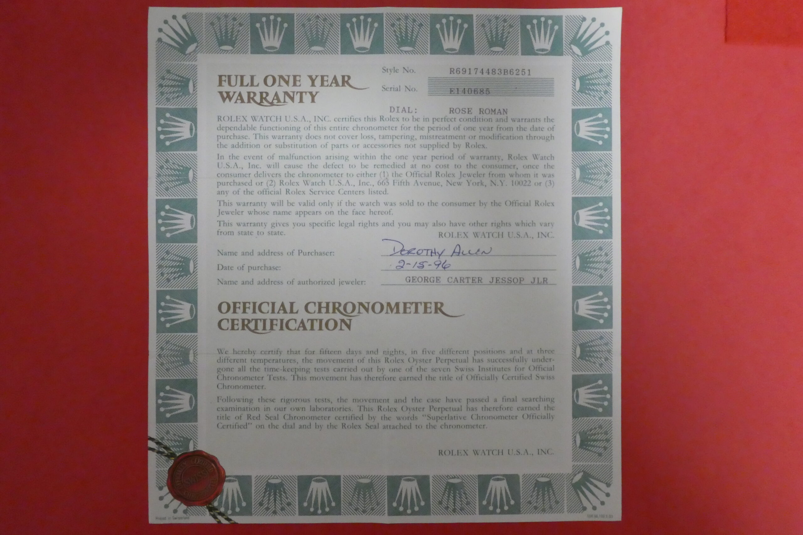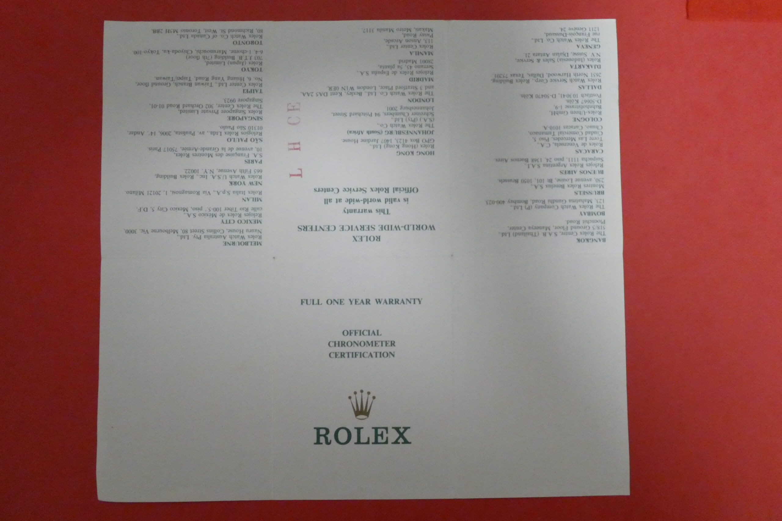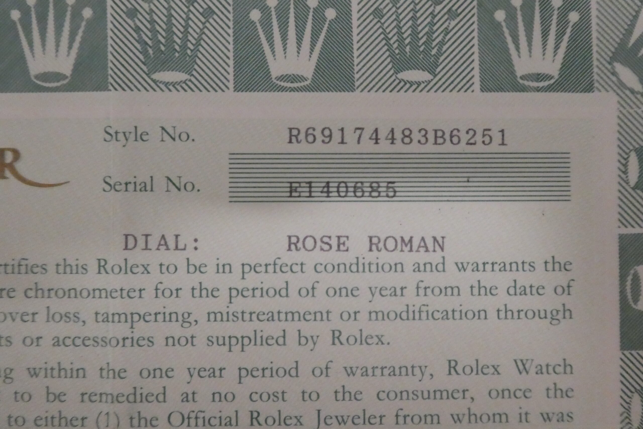 CompareROLEX Vintage Warranty Guarantee Certificate Paper 69174