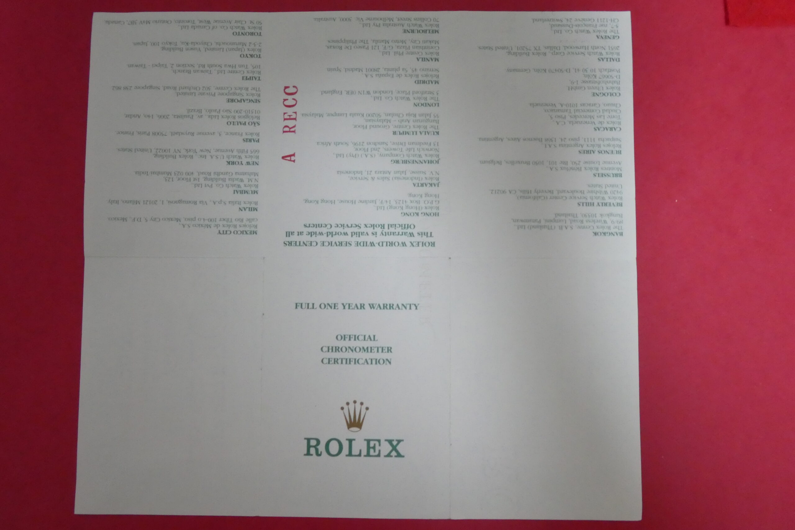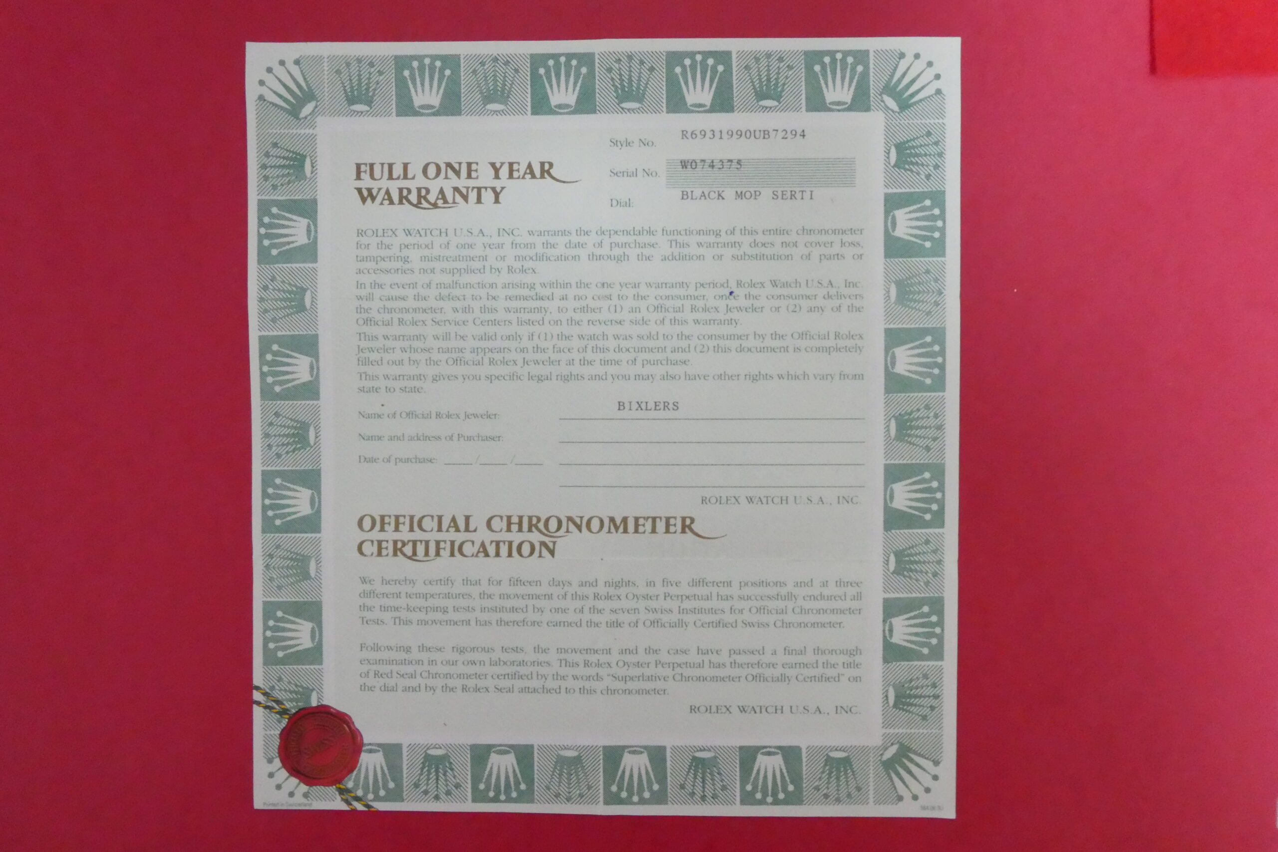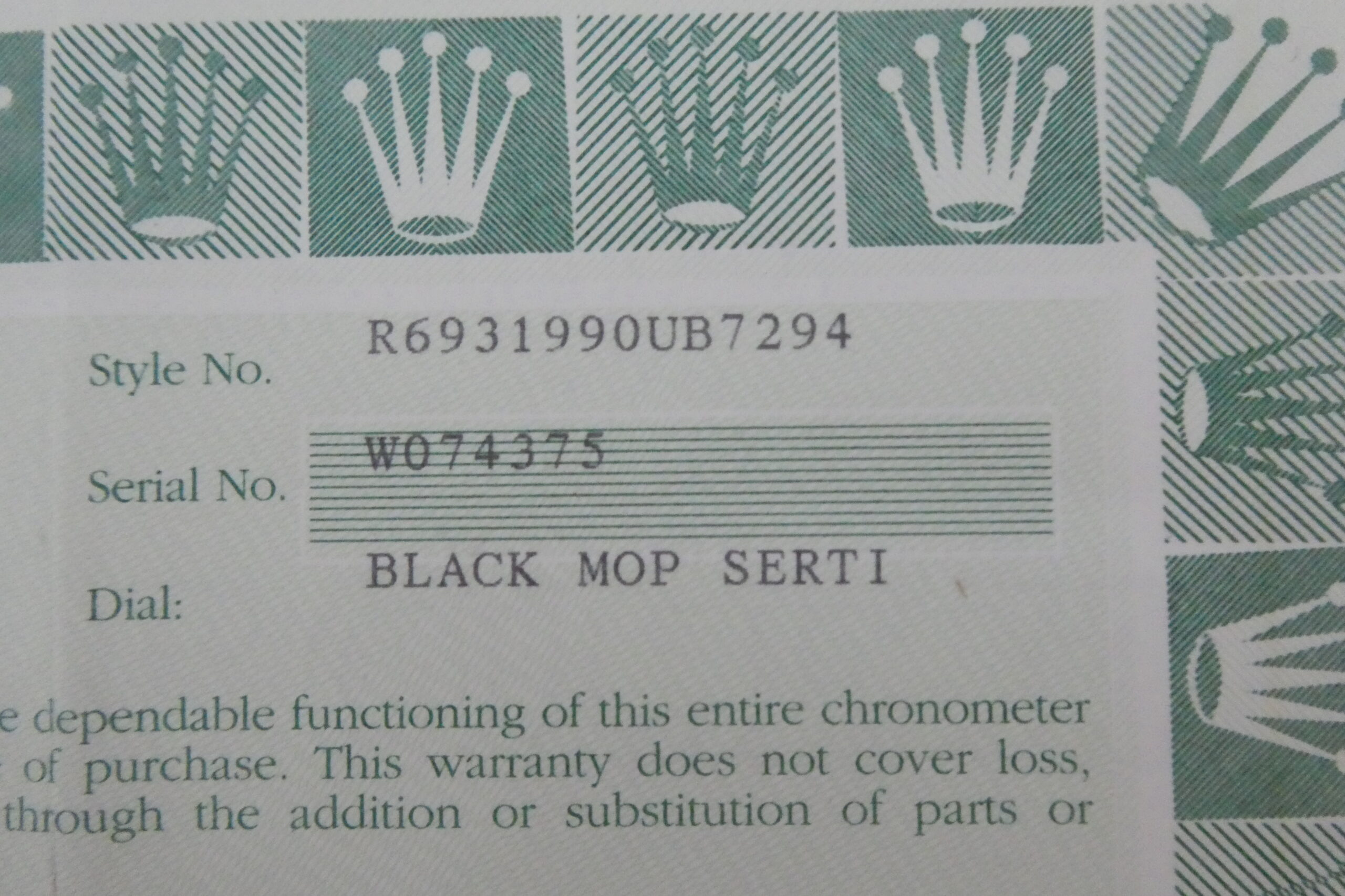 ROLEX Vintage Warranty Guarantee Certificate Paper 69319