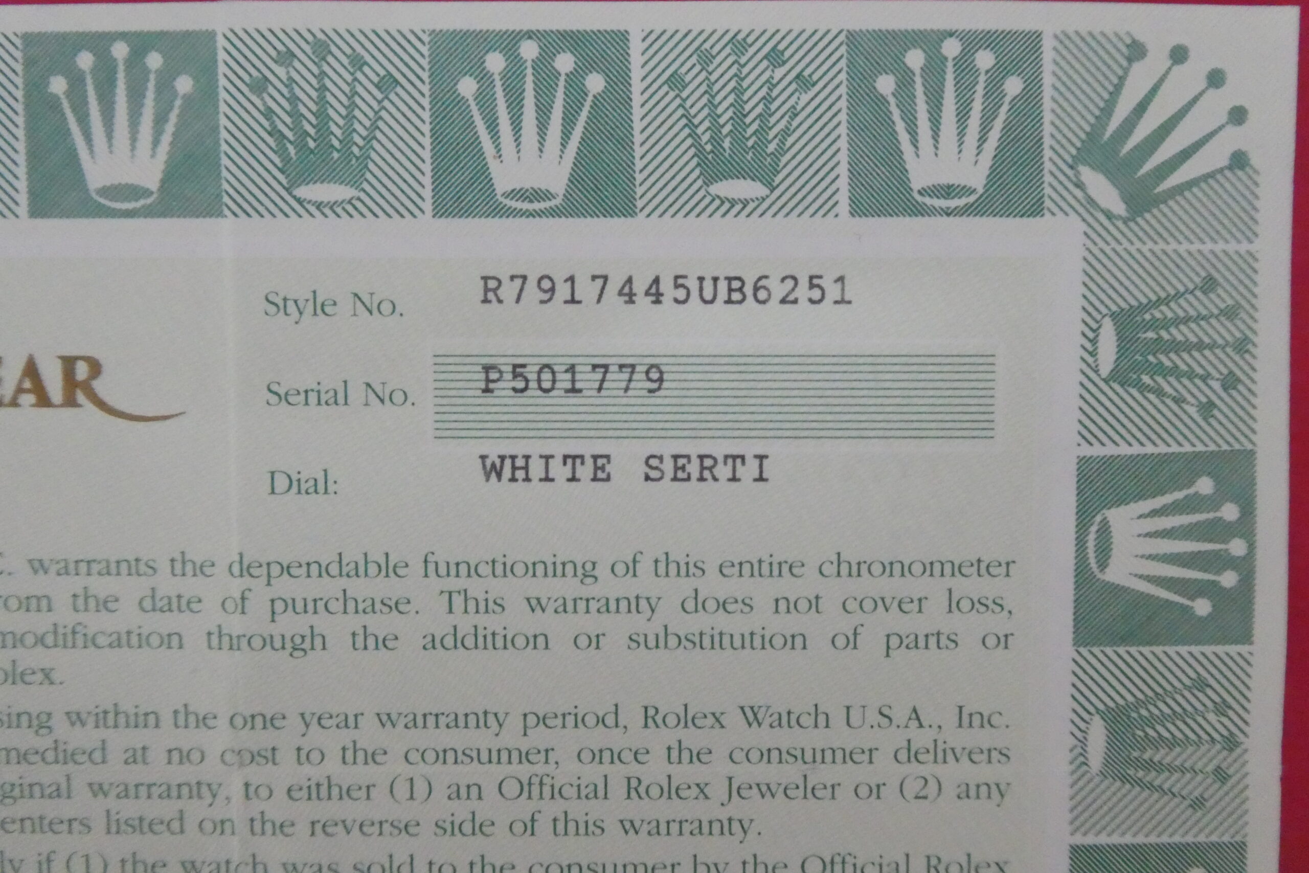 CompareROLEX Vintage Warranty Guarantee Certificate Paper 79174